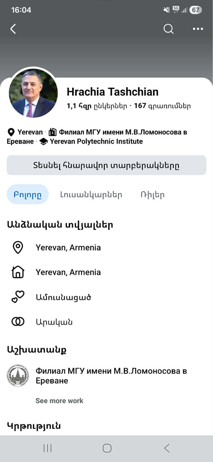 Ավելին` լուռ է նաև նրա ֆեյսբուքյան էջը։