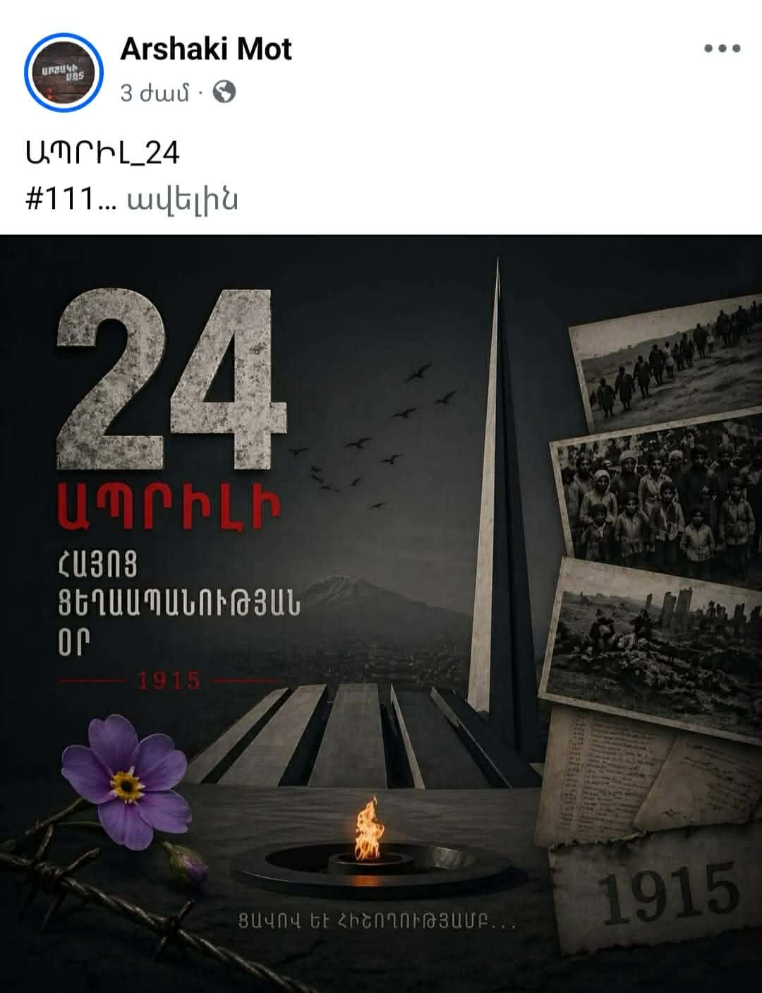 Փոխարենը ակտիվ է նրան պատկանող «Արշակի մոտ» («Թրակիա ՍՊԸ») օբյեկտի ֆեյսբուքյան էջը, որը խորովածի և չուպա֊չուպսի գովազդի արանքում Եղեռնի վերաբերյալ մի նկար է տեղադրել։