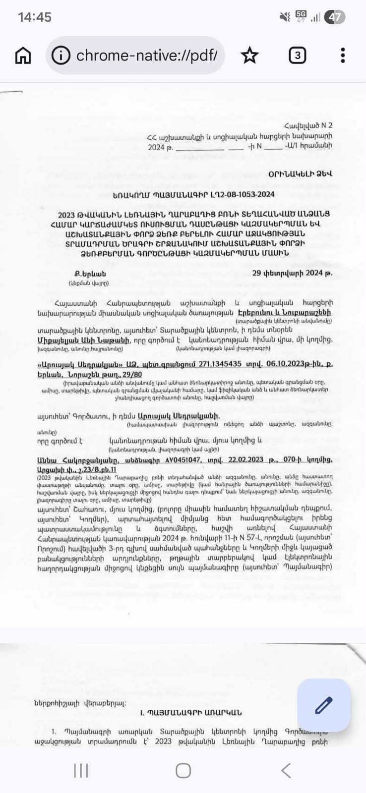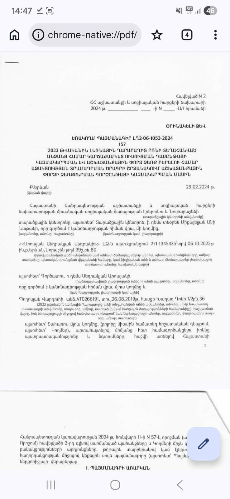 Այս ժամանակագրությունը հարց է առաջացնում՝ ինչպե՞ս է նոր գրանցված ԱՁ-ն այդքան կարճ ժամանակում ընդգրկվել պետական ծրագրում և ինչ ընթացակարգով է ընտրվել որպես գործատու։ Ներկայացված տվյալներով՝ 2024 թվականի փետրվարի 29-ին կնքվել են առնվազն երկու պայմանագրեր (ԼՂ2-06-1053-2024 և ԼՂ2-08-1053-2024) ՀՀ աշխատանքի և սոցիալական հարցերի նախարարության Միասնական սոցիալական ծառայության հետ։