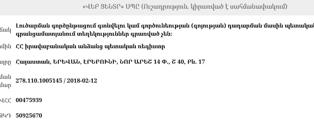 Ուշագրավ է նաև փաստաթղթերում առկա հասցեների և կապերի համընկնումը։ Այսպիսով՝ համընկնում են թե՛ ԱՁ-ի գրանցման հասցեն, թե՛ ընտանիքի բնակության հասցեն, և թե՛ որոշ այլ բիզնես կառույցների հասցեները։ Հաշվի առնելով, որ խոսքը վերաբերում է գործող բարձրաստիճան պաշտոնյայի ընտանիքի անդամին, այստեղ ևս ողջամիտ հարց է առաջանում՝ արդյոք պետական ծրագրում ներգրավվածությունը որևէ կերպ կապվա՞ծ է Վլադիմիր Կիրակոսյանի գործոնի հետ։