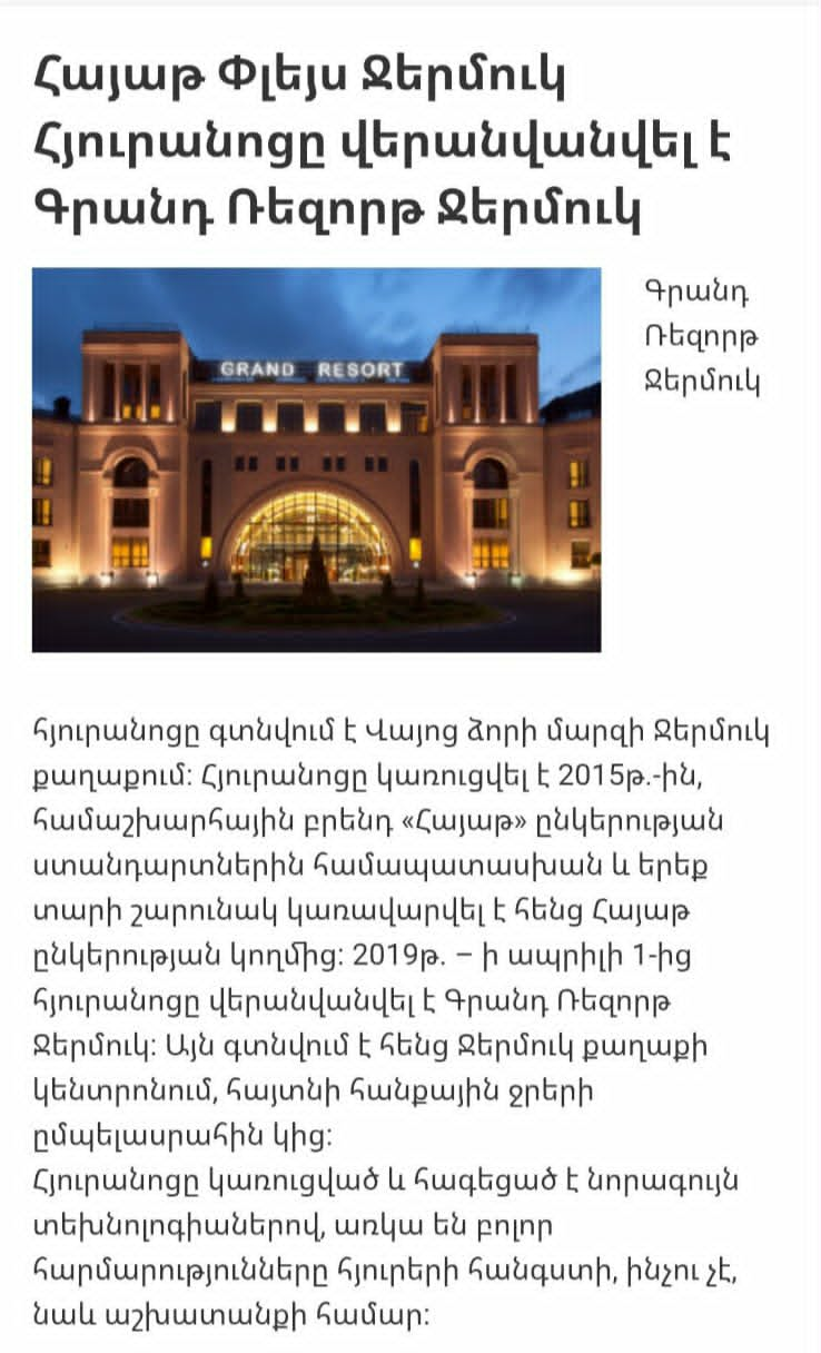 Հատկանշական է, որ Grand Resort Jermuk հյուրանոցը պատկանում է «Ջերսան» ՍՊԸ-ին, որի հիմնադիրներն են Սամվել Սարգսյանը, գործարար Աշոտ Արսենյանը (հայտնի «Ջերմուկի Աշոտ»)։ Սամվել Սարգսյանը այս ընկերությունում հանդիսանում է առանցքային սեփականատերերից և կառավարման կենտրոնական դեմքերից։
