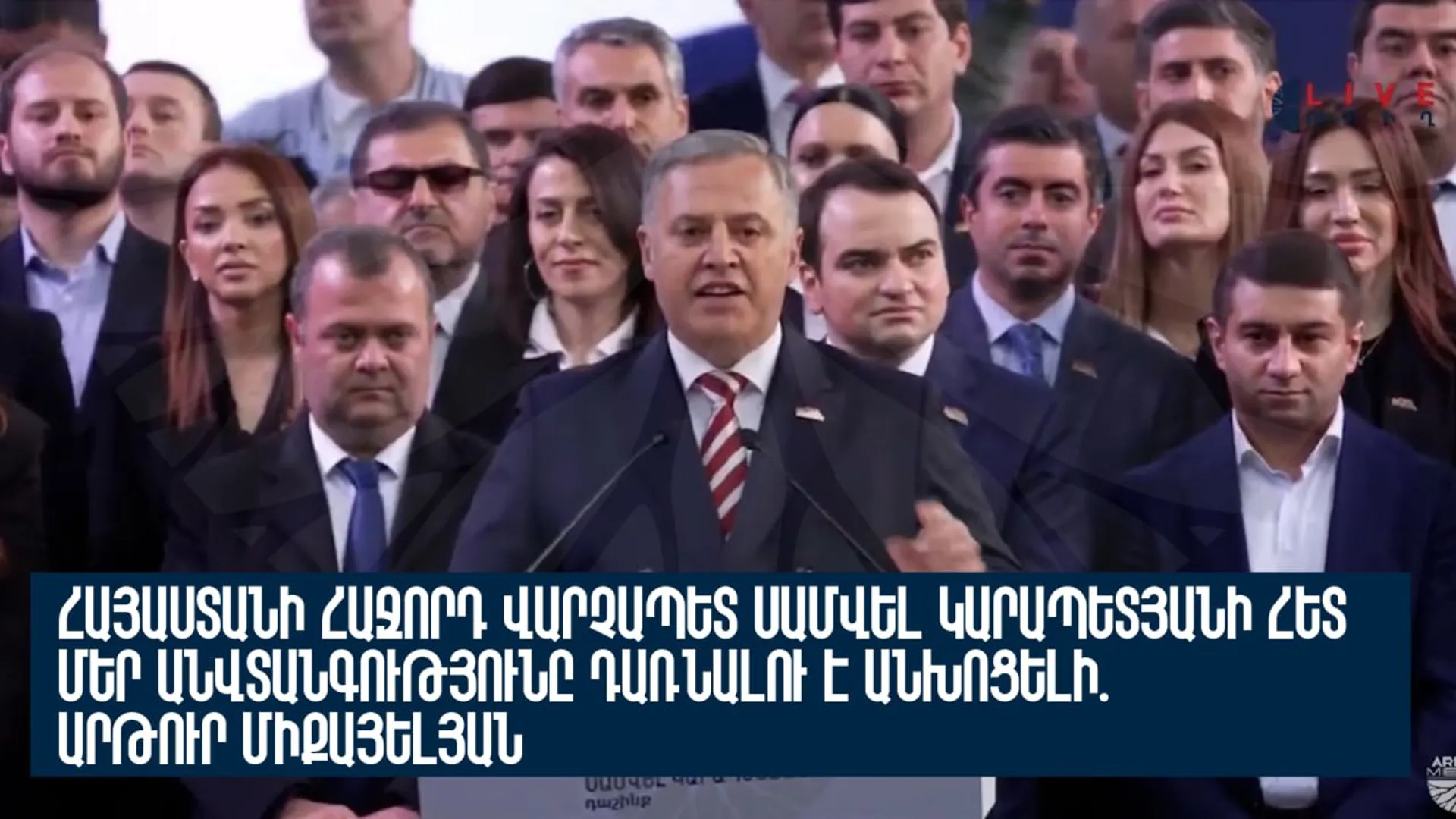 Հայաստանի հաջորդ վարչապետ Սամվել Կարապետյանի հետ մեր անվտանգությունը դառնալու է անխոցելի. Արթուր Միքայելյան․ ՏԵՍԱՆՅՈՒԹ Հայաստանի հաջորդ վարչապետ Սամվել Կարապետյանի հետ մեր անվտանգությունը դառնալու է անխոցելի. Արթուր Միքայելյան․ ՏԵՍԱՆՅՈՒԹ