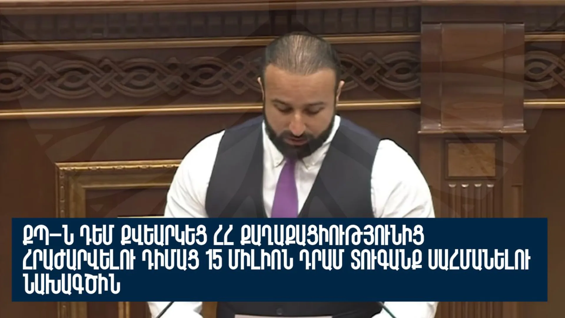 ՔՊ-ն դեմ քվեարկեց ՀՀ քաղաքացիությունից հրաժարվելու դիմաց 15 միլիոն դրամ տուգանք սահմանելու նախագծին. ՏԵՍԱՆՅՈՒԹ ՔՊ-ն դեմ քվեարկեց ՀՀ քաղաքացիությունից հրաժարվելու դիմաց 15 միլիոն դրամ տուգանք սահմանելու նախագծին. ՏԵՍԱՆՅՈՒԹ