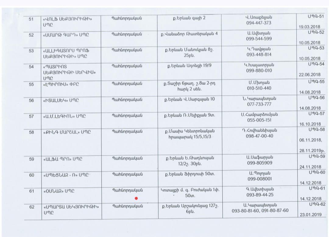 Oragir.News-ը ՆԳ նախարարի մամուլի քարտուղար Նարեկ Սարգսյանից պարզաբանում խնդրեց, թե պահնորդական ընկերությունները վերահսկվո՞ւմ են ոստիկանության կողմից։