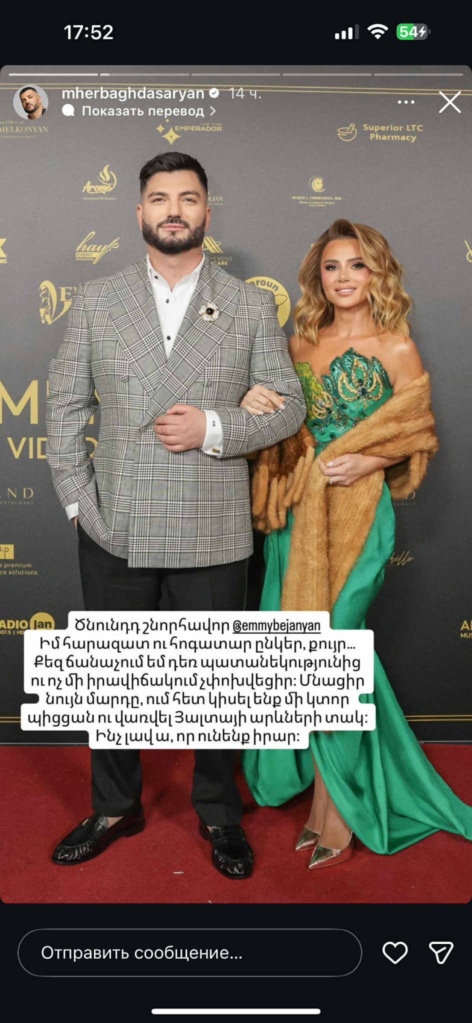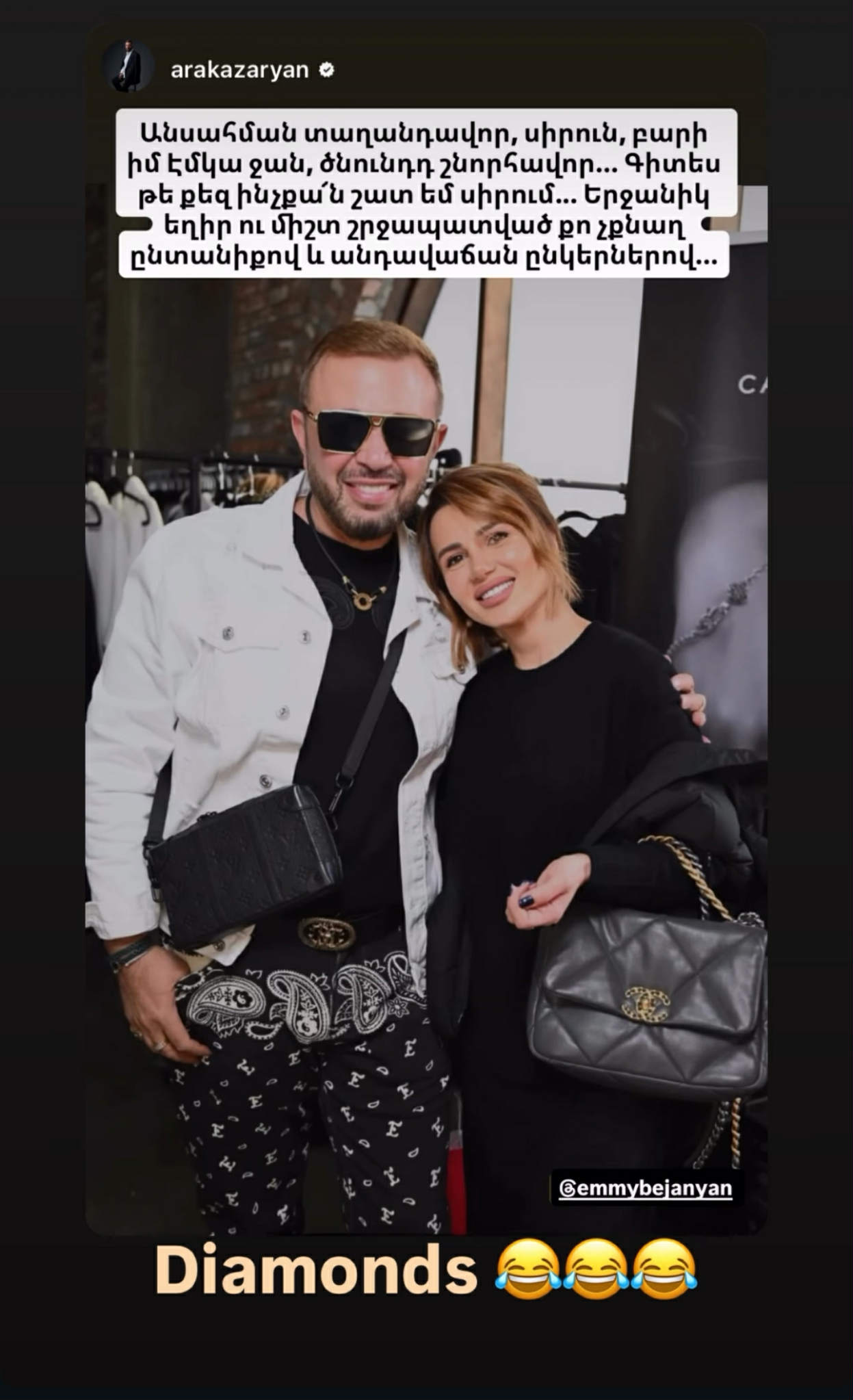 Էմմին իր հերթին վերահրապարակել է իրեն ուղղված բոլոր բարեմաղթանքները՝ շնորհակալություն հայտնելով իր երկրպագուներին և մտերիմներին ուշադրության համար։